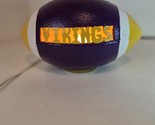 Show your team pride with this unique Minnesota Vikings football accent lamp! The sculpted football features a bold ?VIKINGS? cutout that glows warmly when lit?perfect for a fan cave, office, shelf, or bedside table.