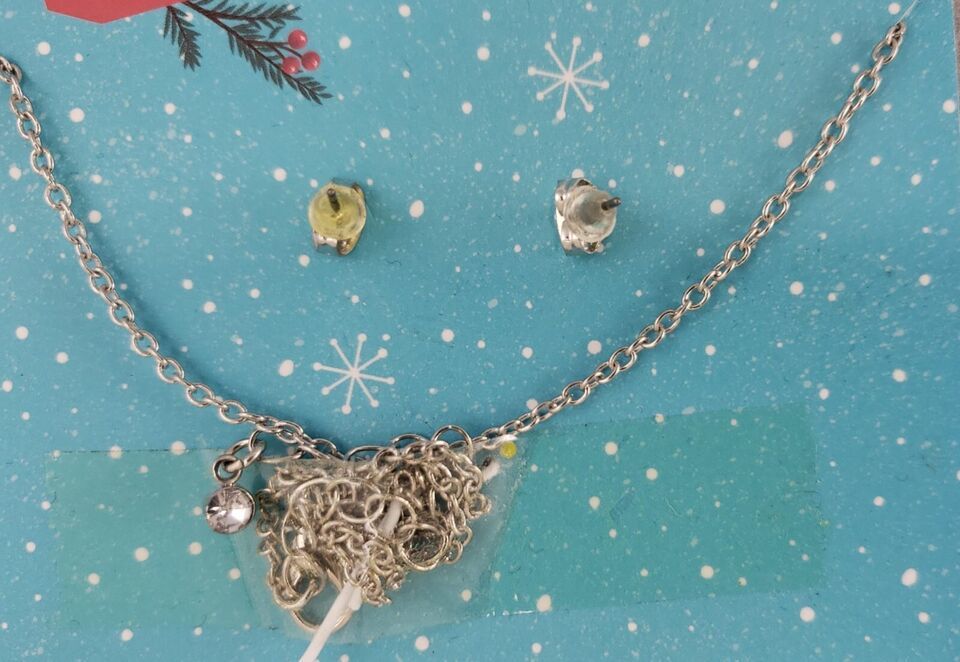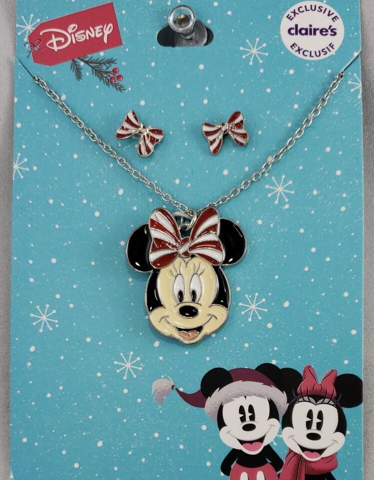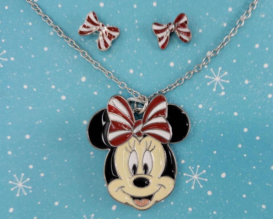 - Minnie Mouse peppermint Bow Christmas Necklace Earrings Set