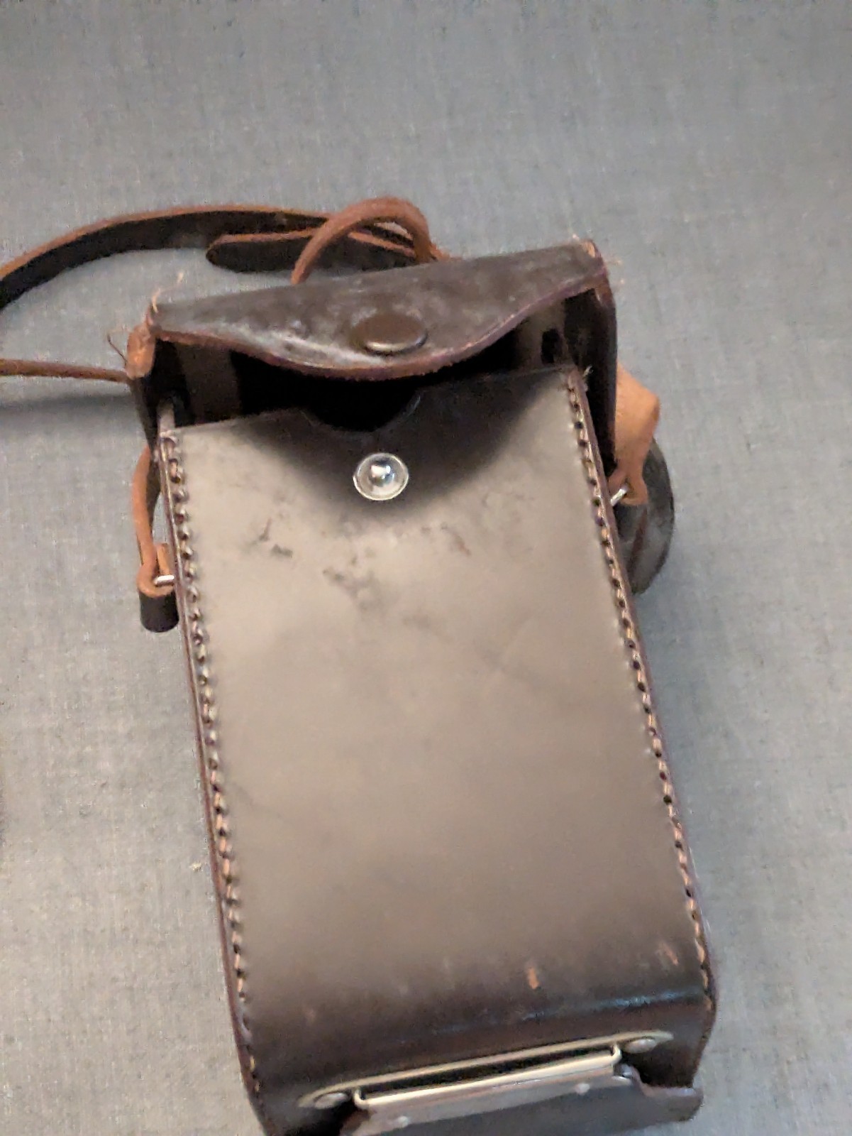 Le Minolta Autocord 6x6 TLR Film Camera Lens Cover Rokkor 75mm f3.5 Case Box est un ensemble d'accessoires pour appareil photo vintage des annees 1950, concu pour les appareils photo Minolta Autocord. L'etui noir comprend un filtre d'objectif et une sangle, parfaits pour ranger et proteger l'objectif de votre appareil photo. Cet appareil, fabrique au Japon, est un veritable produit de la marque Konica Minolta, dote de modes de mise au point manuelle et de programme pour une flexibilite accrue dans votre photographie.