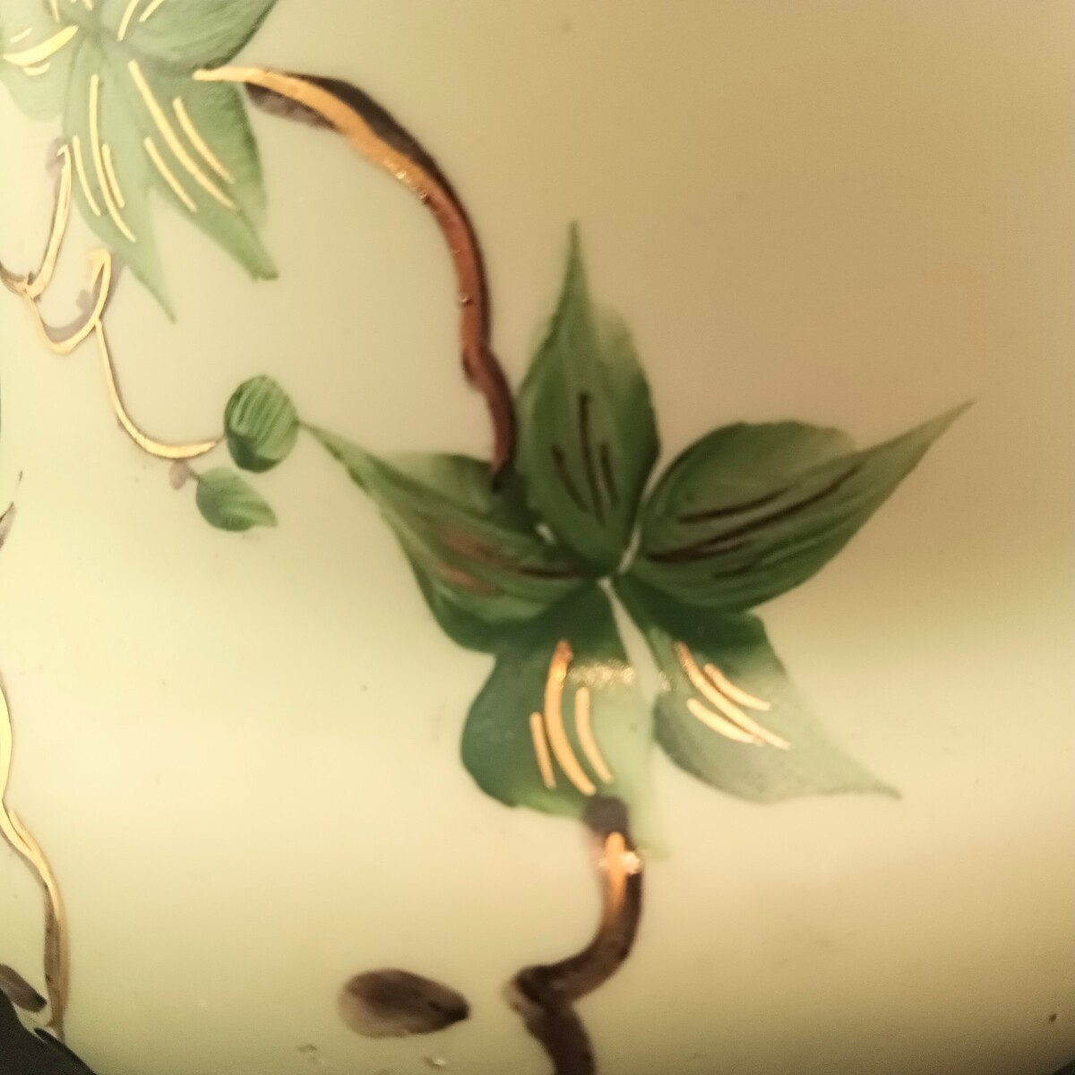 - Mint Green Satin Lamp Body, Hand-Painted Ceramic, Antique and 13"x5.5"