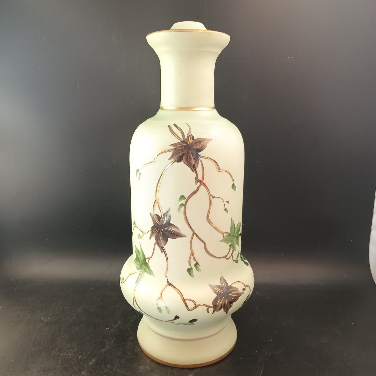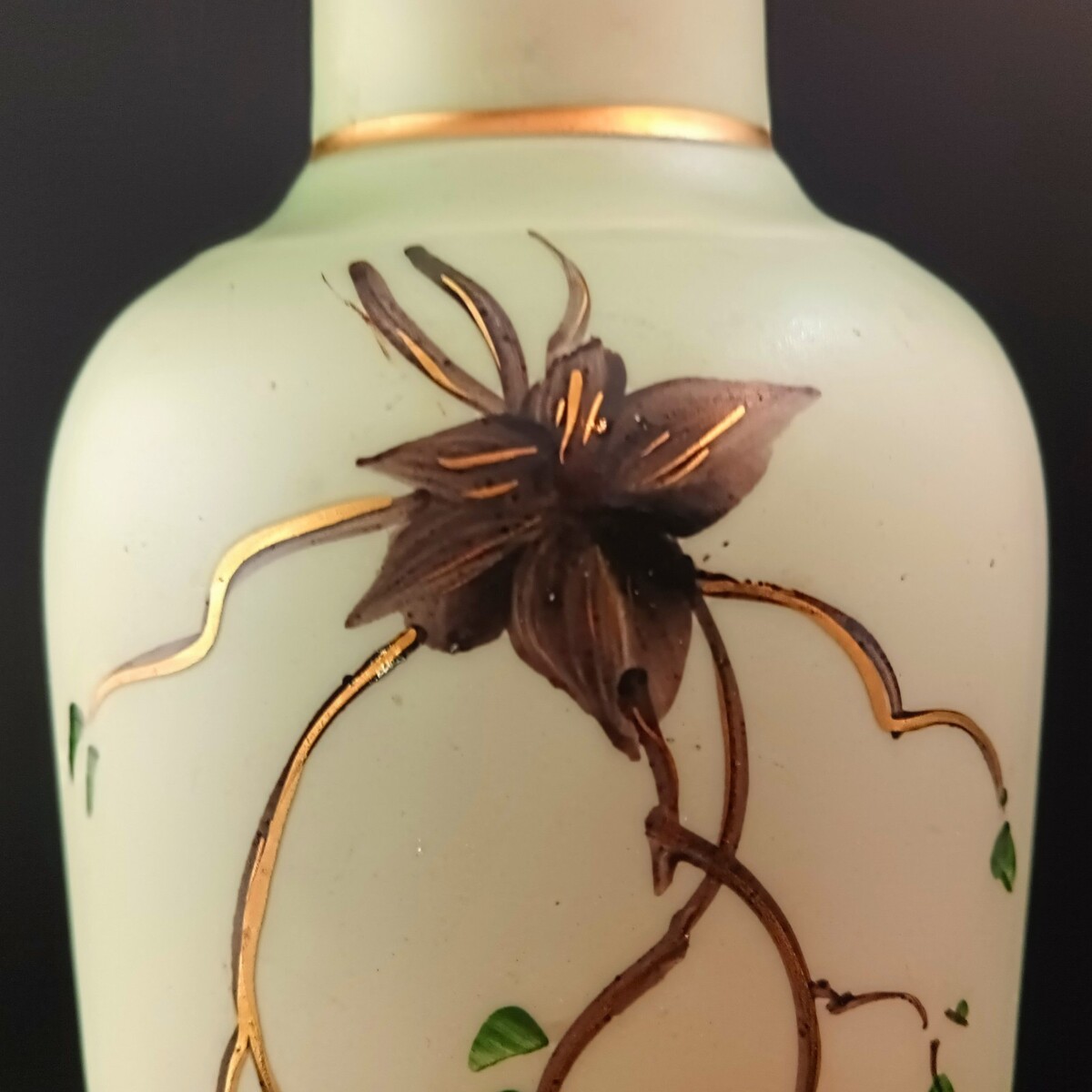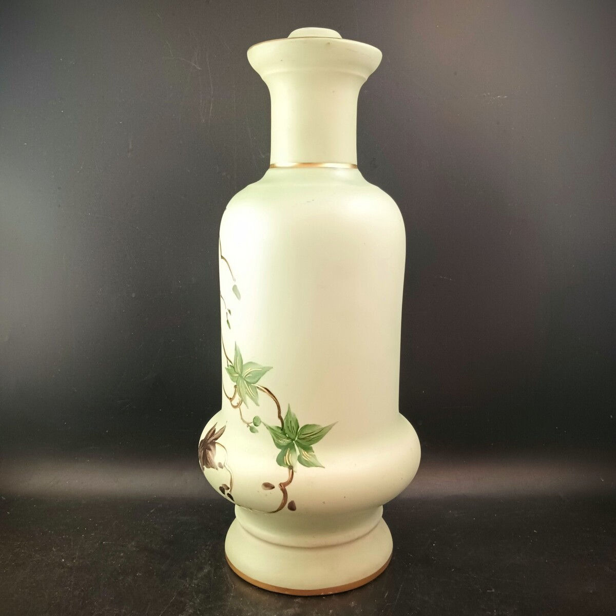 Mint Green Satin Lamp Body, Hand-Painted Ceramic, Antique and 13"x5.5"