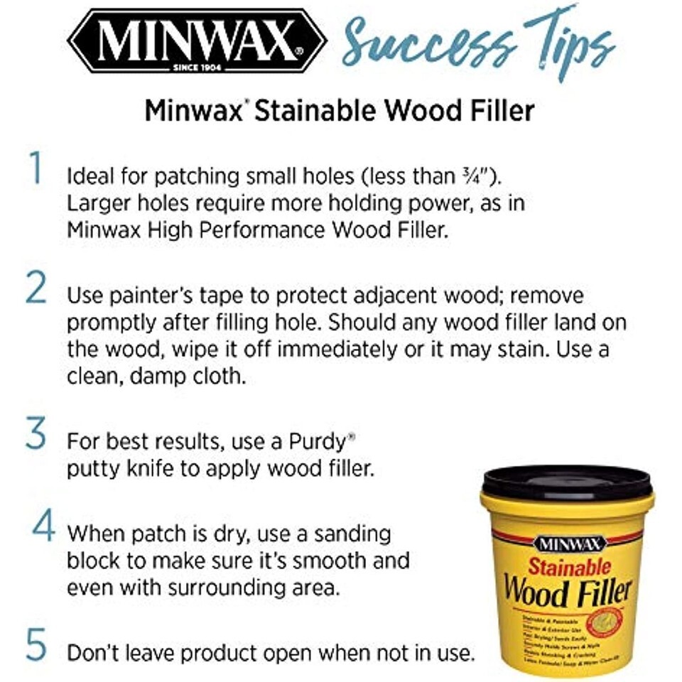 - Minwax 42853000 Stainable Wood Filler, 16-Ounce