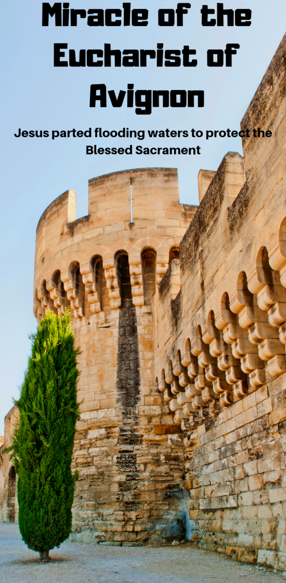 Avignon, 1433 - The waters parted during a flood to protect the Monstrance containing the Consecrated Hosts - reminiscent of Moses parting the Red Sea.