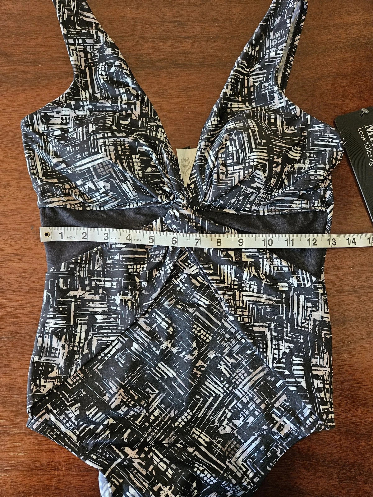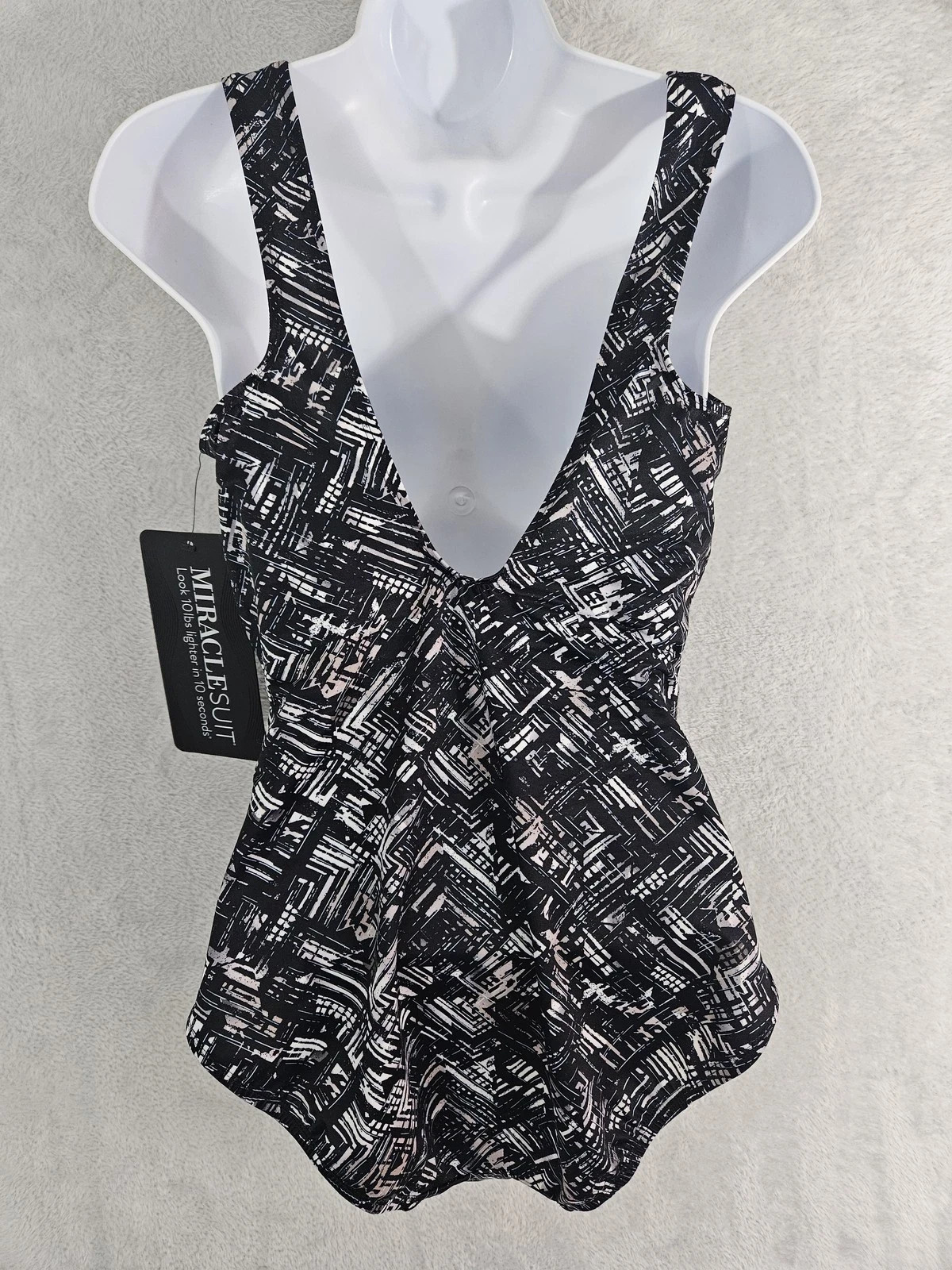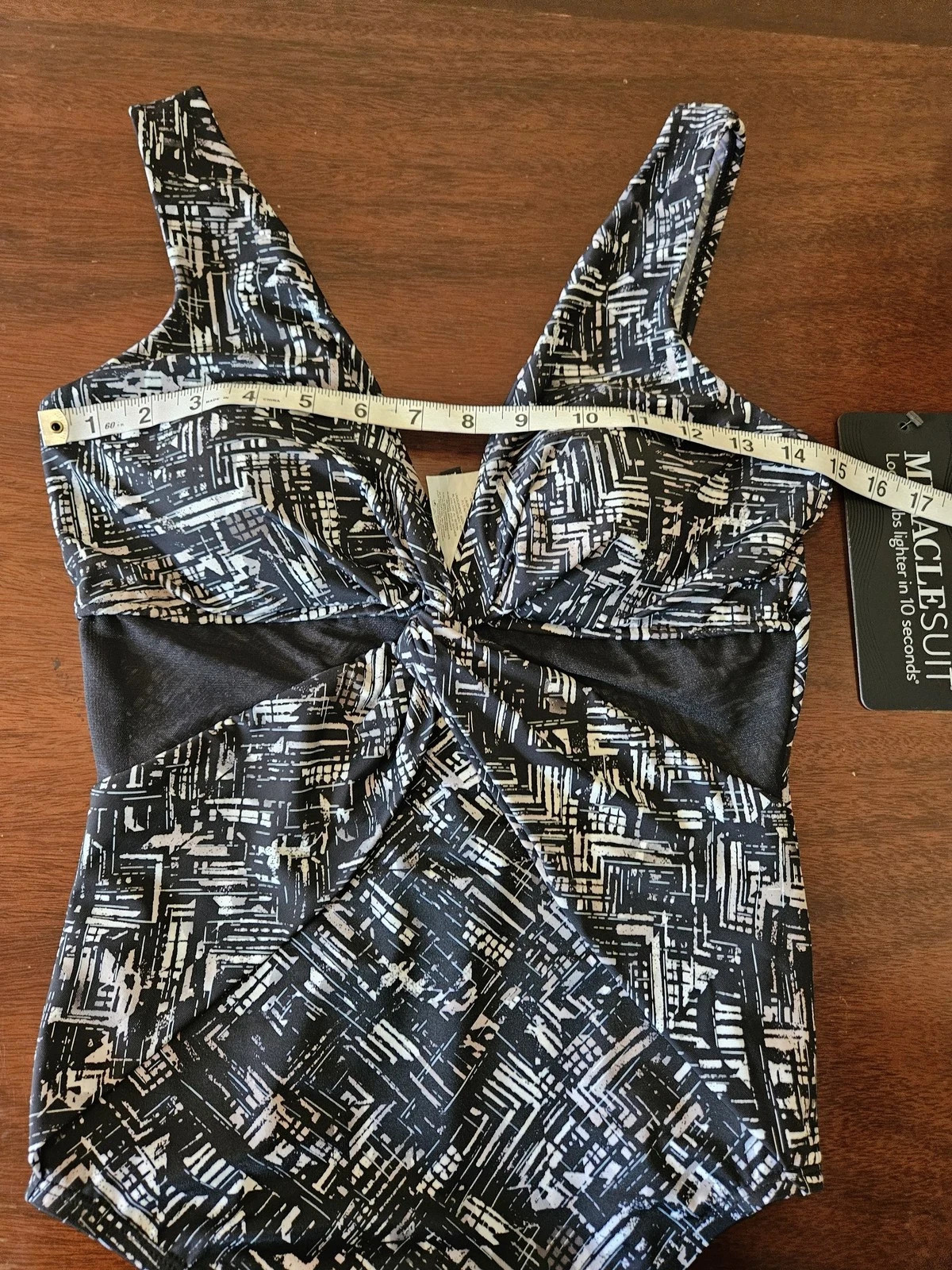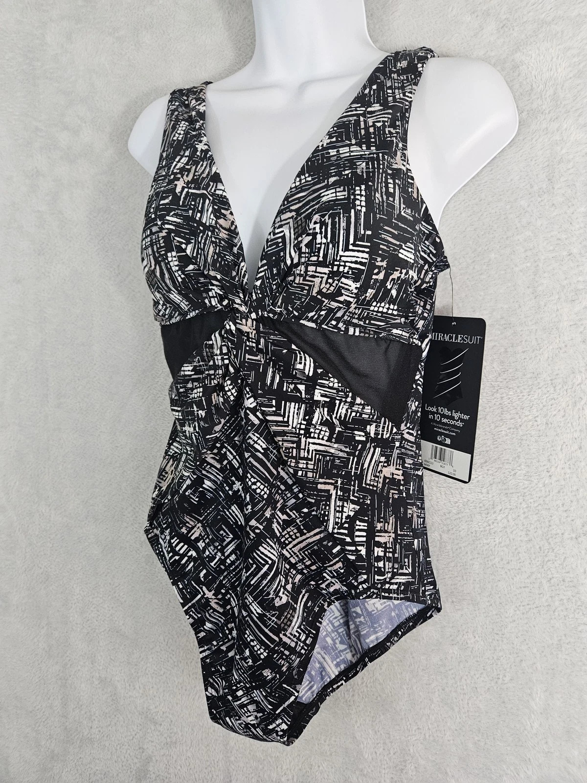 - Miraclesuit Swimsuit Womens 12 Black White Twist of Fate One Piece Tummy Control