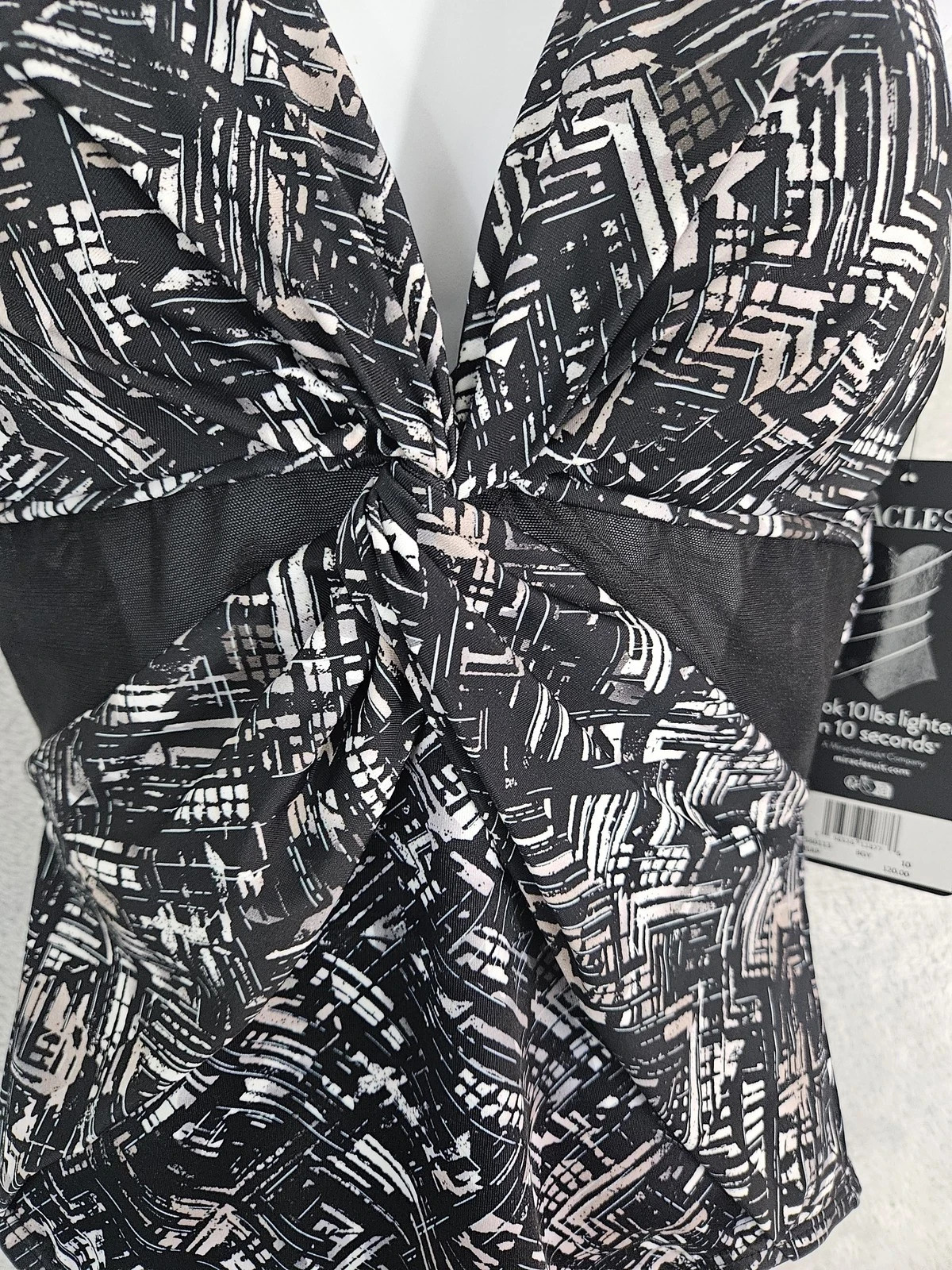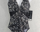 Miraclesuit Swimsuit Womens 12 Black White Twist of Fate One Piece Tummy Control