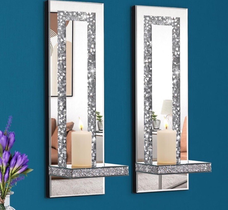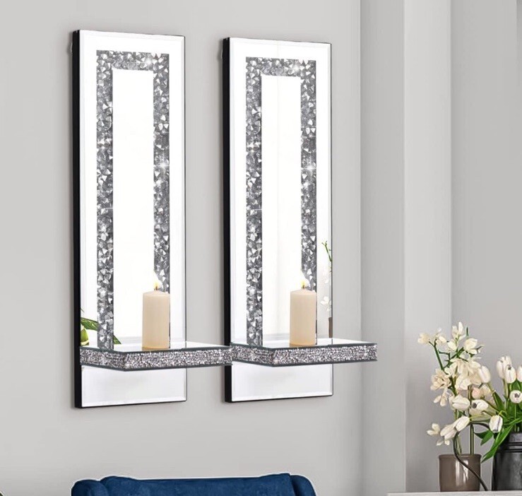 Mirrored Candle Sconces, Silver Wall Candle Holder Set