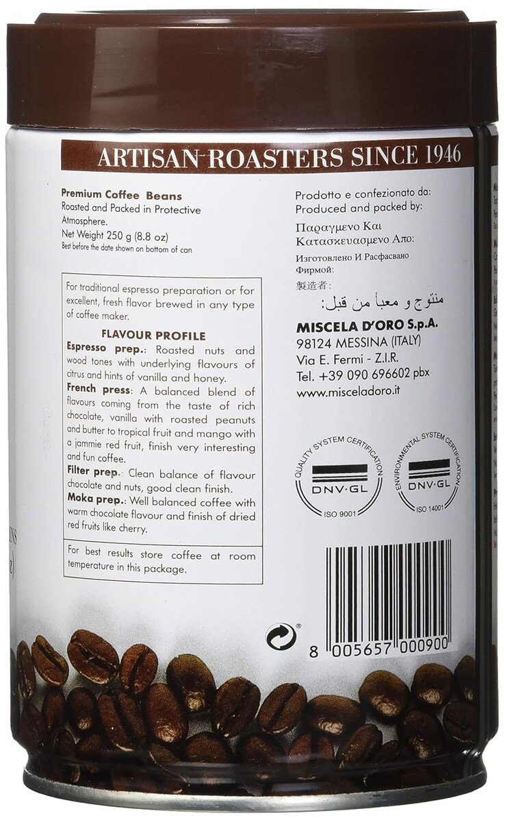 - Miscela d'Oro Caffe in Grani Espresso Beans 8.8 oz Can Whole Bean