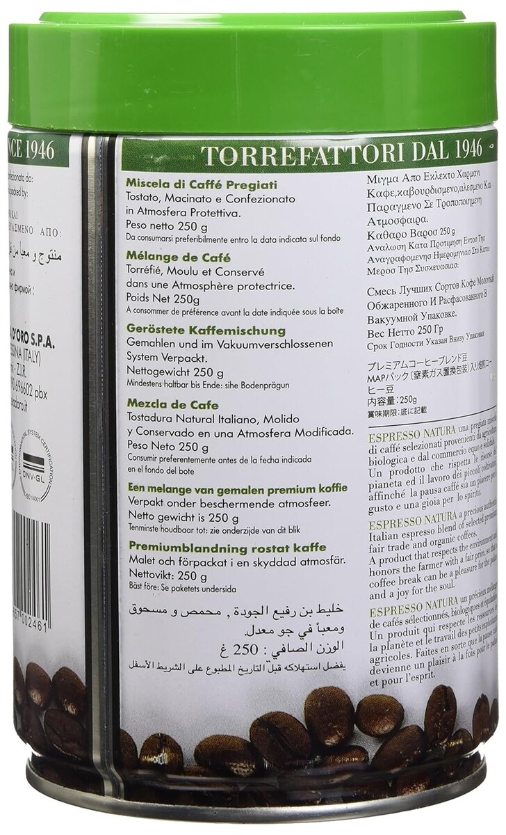 This sale is for Miscela d'Oro Natura Organic Ground Espresso 8.8 oz can (250 g), Made in Italy.