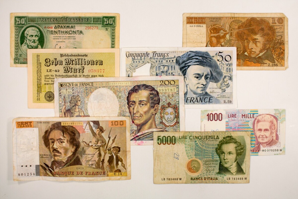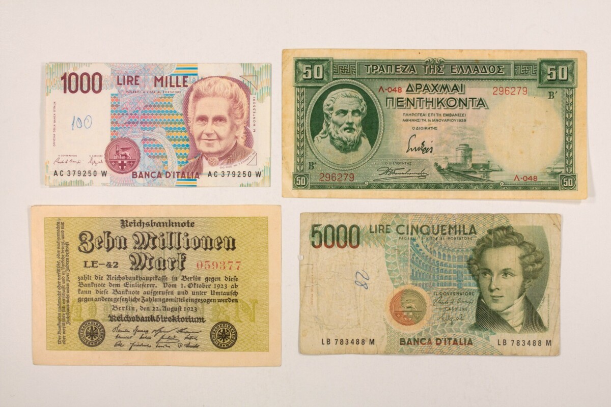 Miscellaneous notes from Europe. France, Germany, Greece and Italy. 8 note lot.