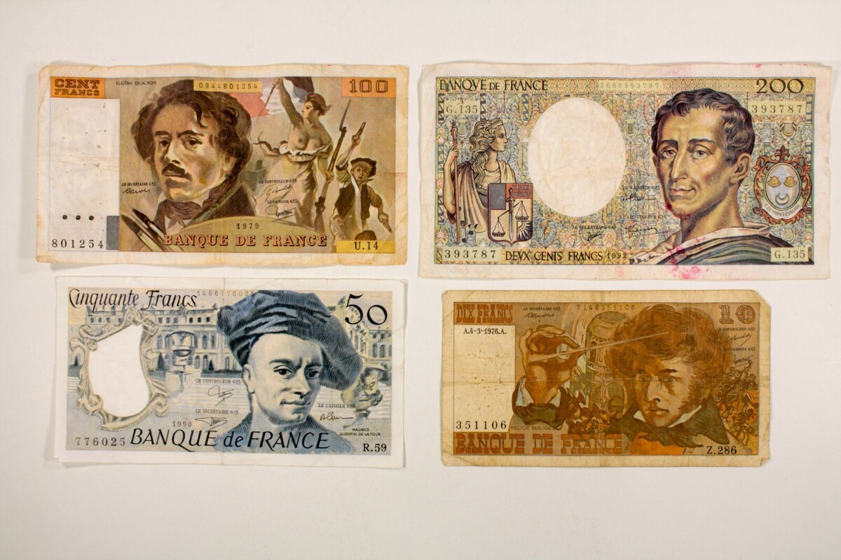 France: 10 Franc 4-Mar-1976, Very Fine P#150c. 50 Franc 1990, Very Fine+ P#152a. 100 Franc 1979, Very Fine P#154a. 200 Franc 1992, Very Fine P#155e.