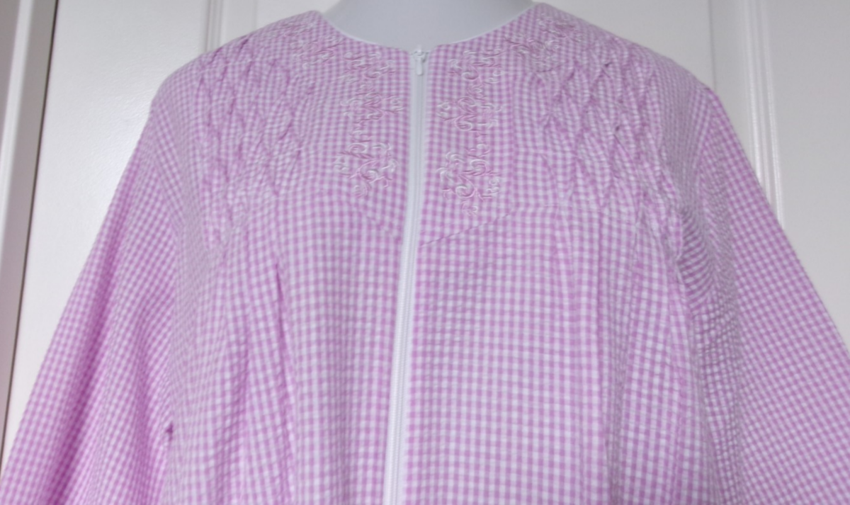 Miss Elaine Mid sleeve robe Size XL Style 862614 front zipper lilac white print
