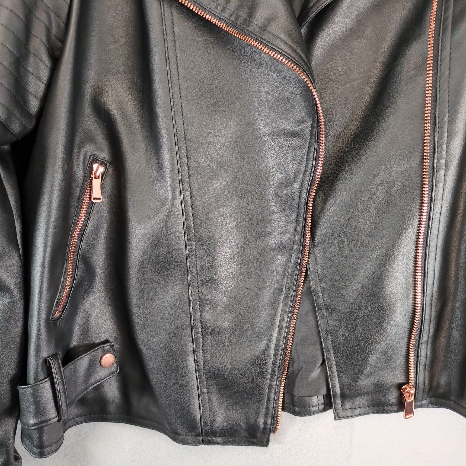 - Miss London Black Label Faux Leather Jacket Women's Plus 2X Copper Zippers Biker