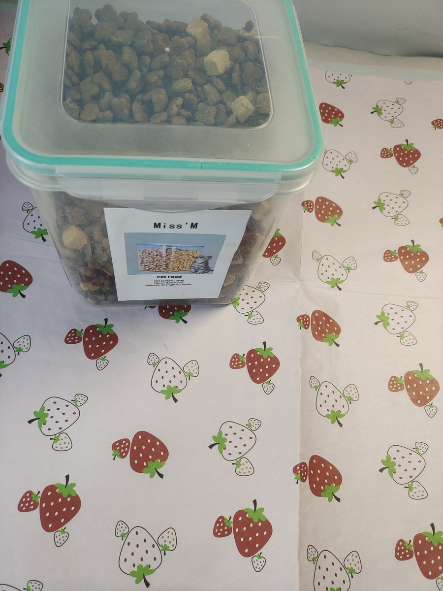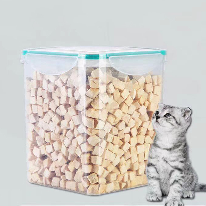 The transparent, sealable container keeps the pet food fresh, dry, and free from moisture or pests, preserving its quality and taste.