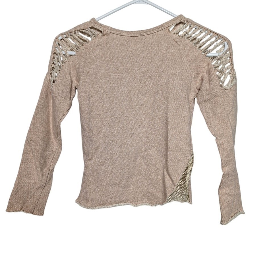 Miss Me Girls Pull Over Sweater Size Small Beige Glitter Distressed Shoulder