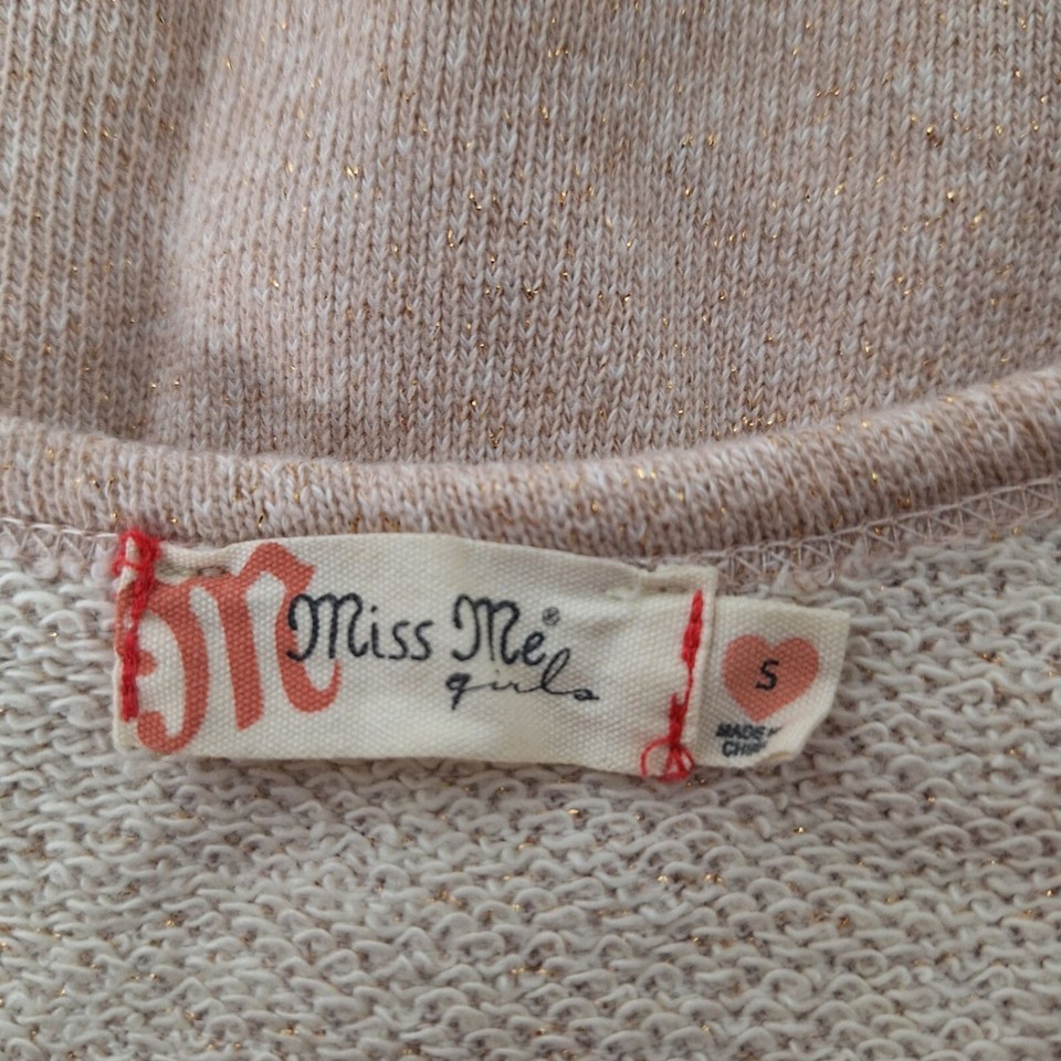 - Miss Me Girls Pull Over Sweater Size Small Beige Glitter Distressed Shoulder
