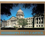 This postcard shows the stately Mississippi State Capitol in Jackson, Mississippi. The grand domed structure stands in neoclassical style, with marble steps, tall columns, and detailed pediments ? a striking symbol of the state?s government and history.