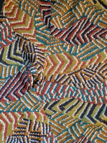 Añade un toque de moda italiana a tu guardarropa con este hermoso cardigan Missoni for Bergdorf Goodman. Confeccionado con una mezcla de algodon de alta calidad, este sueter unisex presenta un llamativo patron en zig zag en un vibrante diseño multicolor. El escote en pico y la manga larga aportan un toque de sofisticacion, haciendolo perfecto tanto para hombre como para mujer. Confeccionado en Italia por la reconocida casa de moda Missoni, este sueter es de la mas alta calidad. Es una talla L de corte regular y es perfecta para cualquier ocasion. Ya sea que te estes vistiendo para salir por la noche o simplemente hacer recados, este sueter Missoni Bergdorf Goodman seguramente llamara la atencion. Medidas: axila a axila: 28 pulgadas Hombro a puño 26 pulgadas Hombro a dobladillo: 30 pulgadas