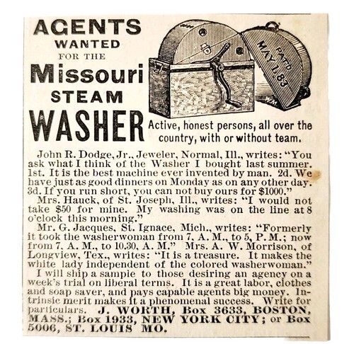 - Missouri Steam Washer Agents 1885 Advertisement Victorian Appliances ADBNA15