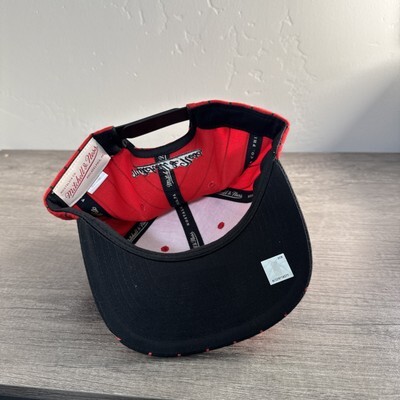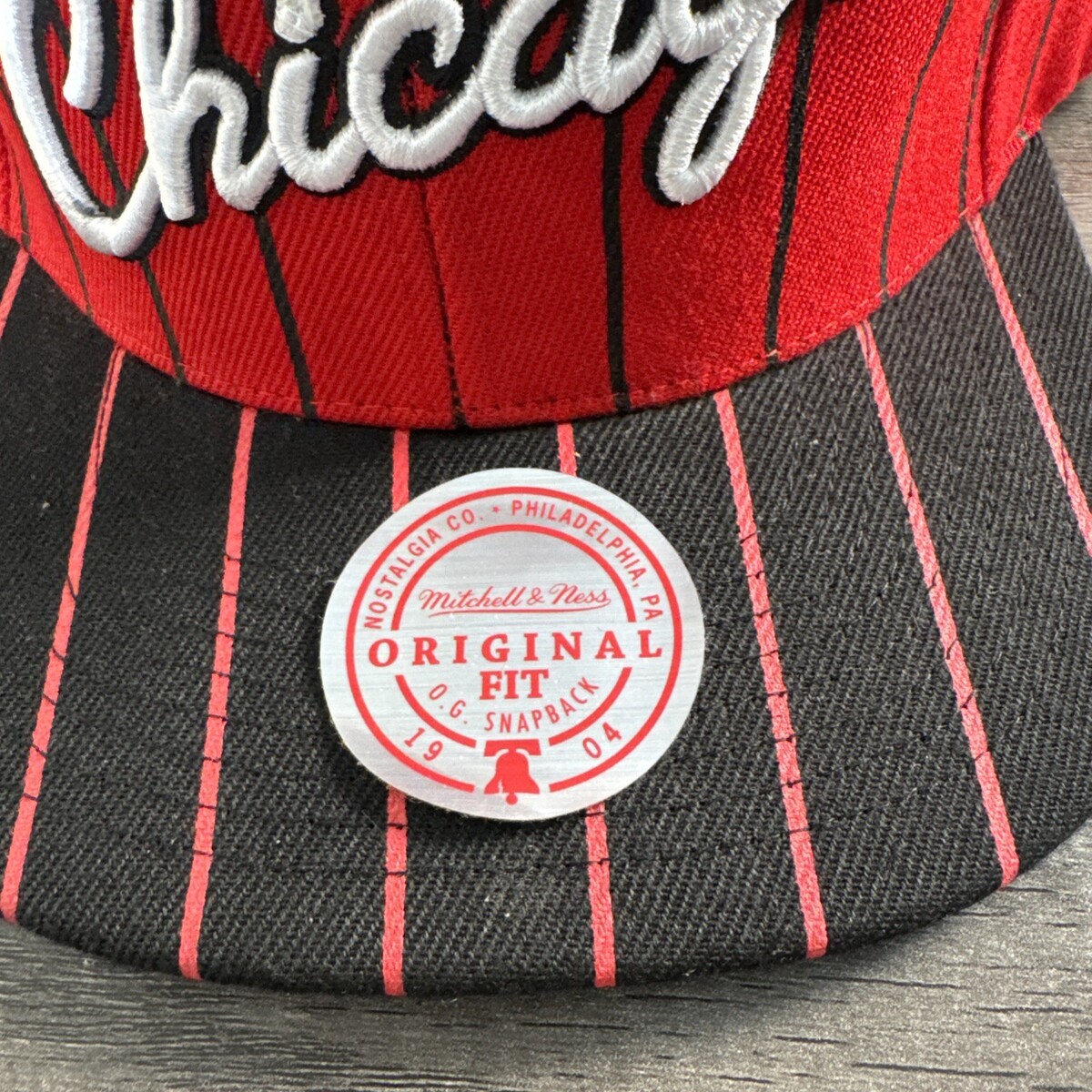 - Mitchell & Ness Classics Chicago Bulls Striped Jersey Hat SnapBack Red Black