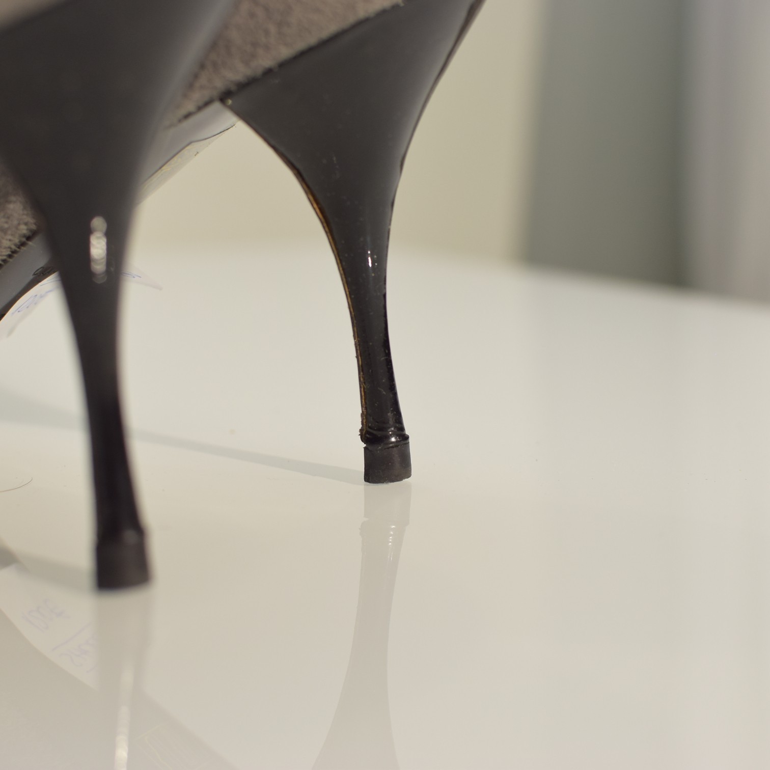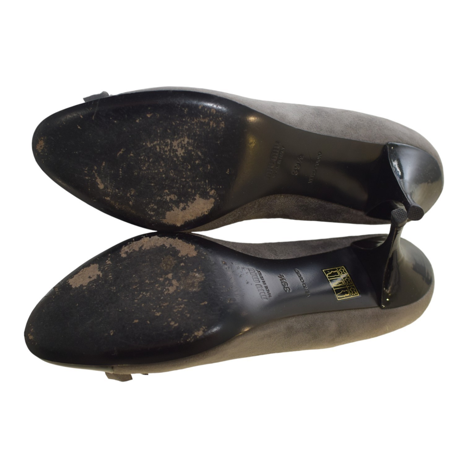 - Miu Miu Bow Pumps – Gray Suede with Black Patent Leather Cap Toe size 39.5
