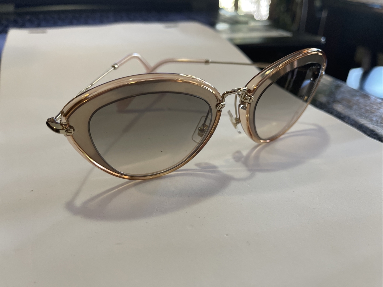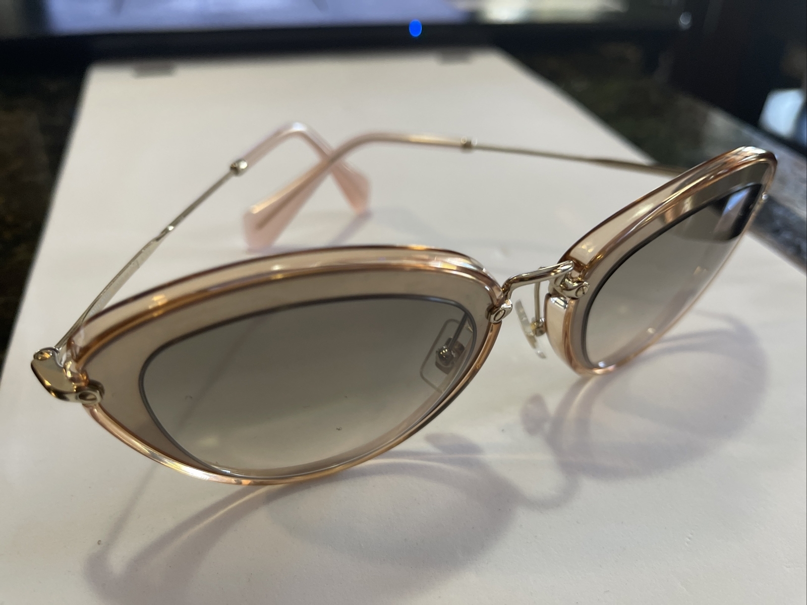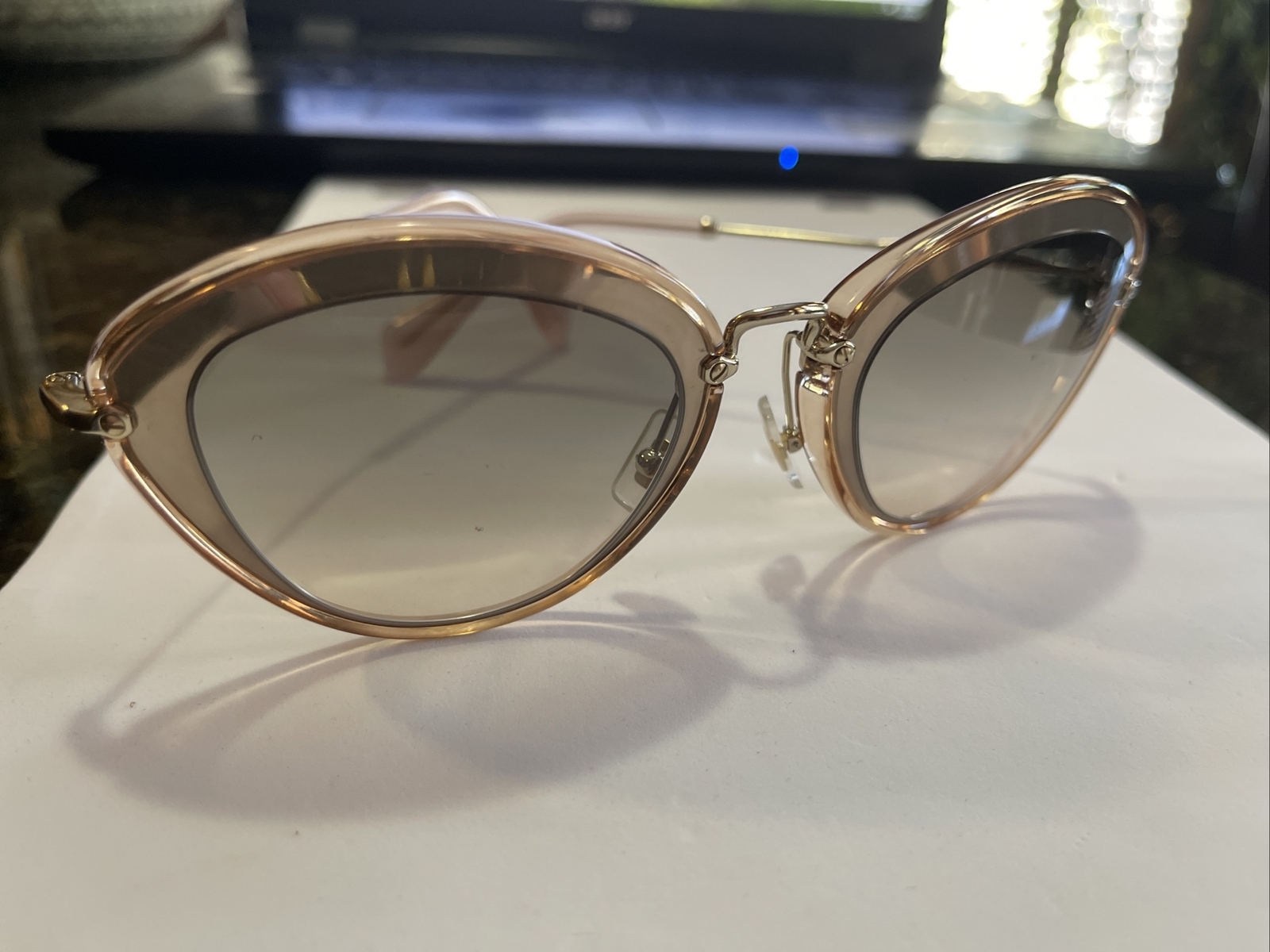 - Miu Miu MU51R UFD-3H2 Transparent Amber/Gold Sunglasses New Authentic