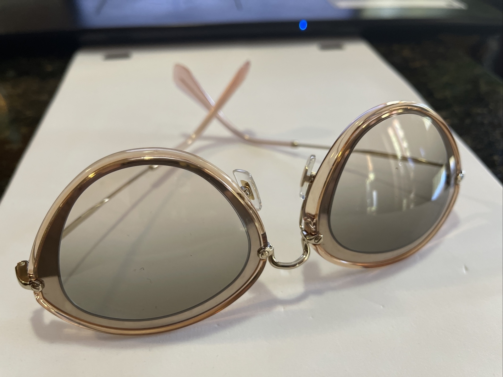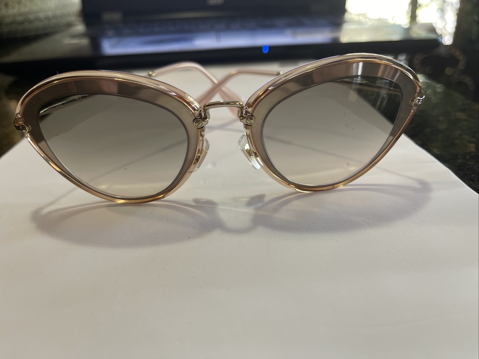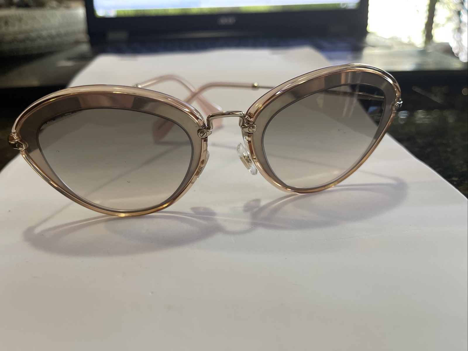 - Miu Miu MU51R UFD-3H2 Transparent Amber/Gold Sunglasses New Authentic