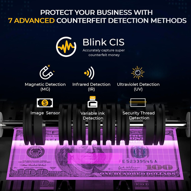 Powered by the next-generation BLINK CIS technology, RIBAO MC-40 delivers unmatched precision in detecting even the most sophisticated counterfeit bills?keeping your business safe and your revenue secure.