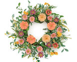 Add a burst of color to your home with this Mixed Gerbera Daisy Wreath. Featuring bright pink and orange gerbera daisies, this 24 wreath is enhanced with mixed foliage and seeded accents. The natural grapevine twig base provides depth, while wired stems and base ensure a full, versatile display. Perfect for your front door, entryway, or above your mantle, this wreath brings vibrant, nature-inspired beauty to your space this spring. Measures 25.8 inches across when branches are extended and fluffed.