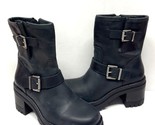 MIZ MOOZ LEATHER BUCKLE ANKLE BOOTS SIDE ZIP BLACK 37EU / 7US # Z-22
