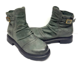 - MIZ MOOZ LEATHER BUCKLE ANKLE BOOTS SIDE ZIP FOREST GREEN 37EU / 7US # Z-17