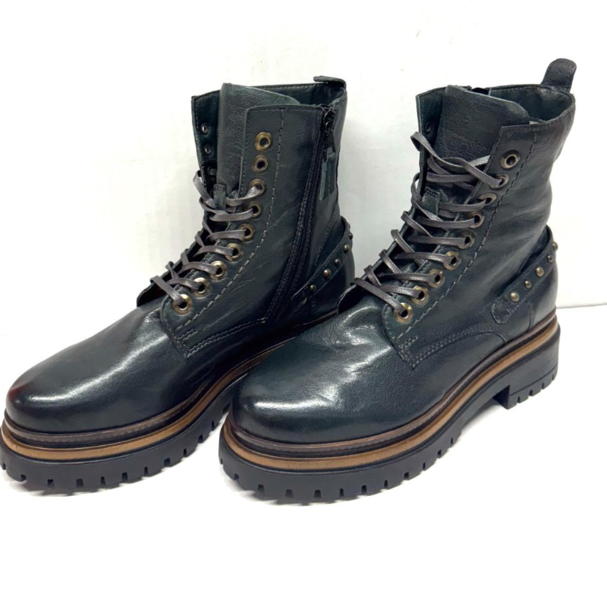 - MIZ MOOZ SOFT LEATHER PLATFORM BOOT SIDE ZIP LACE UP 37EU/7US DARK GREEN Z-110