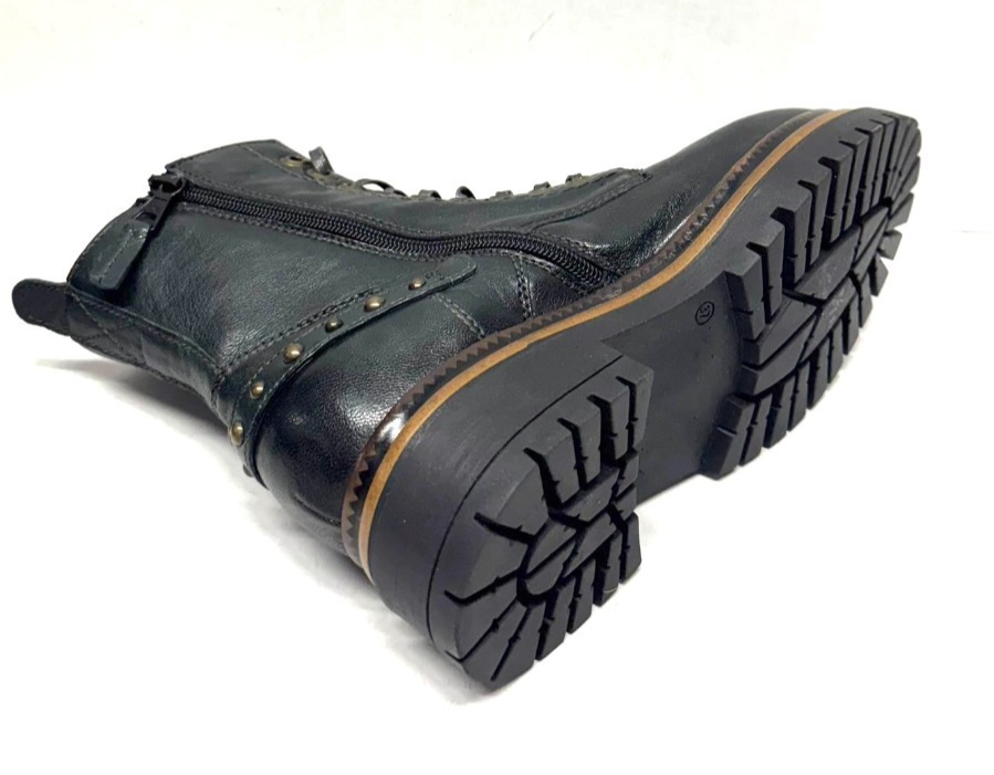 MIZ MOOZ SOFT LEATHER PLATFORM BOOT SIDE ZIP LACE UP 37EU/7US DARK GREEN Z-110