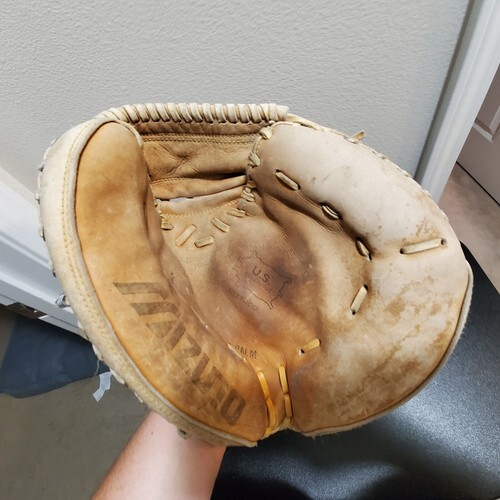 Mizuno Professional U.S. Steerhide Tan Left Handed Baseball Catchers Mitt / Glove - Model MT1200. Right-hand Throw. Max Flex. Made in Korea.