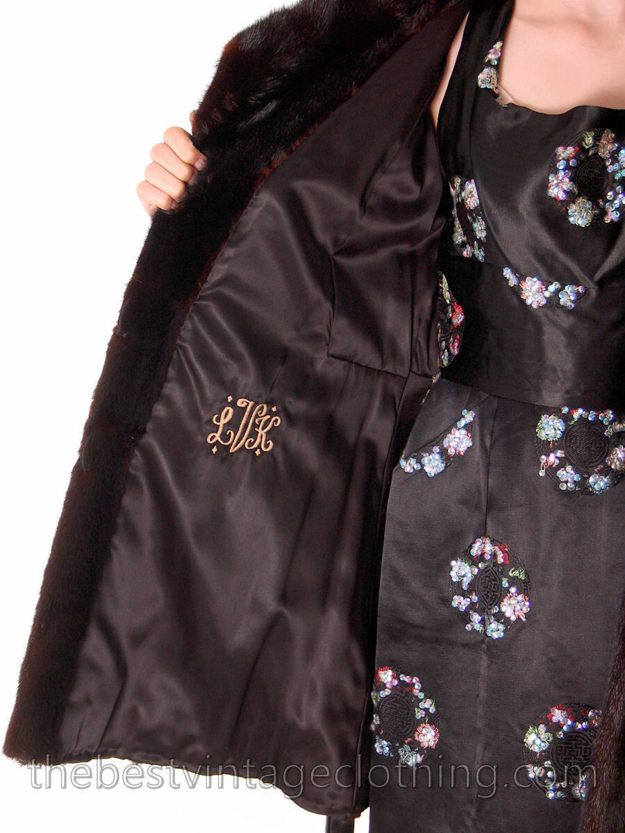 Mob Wife Era S FUR Coat Black Ranch Mink Trench Coat w/ZIP off Stole 1970s