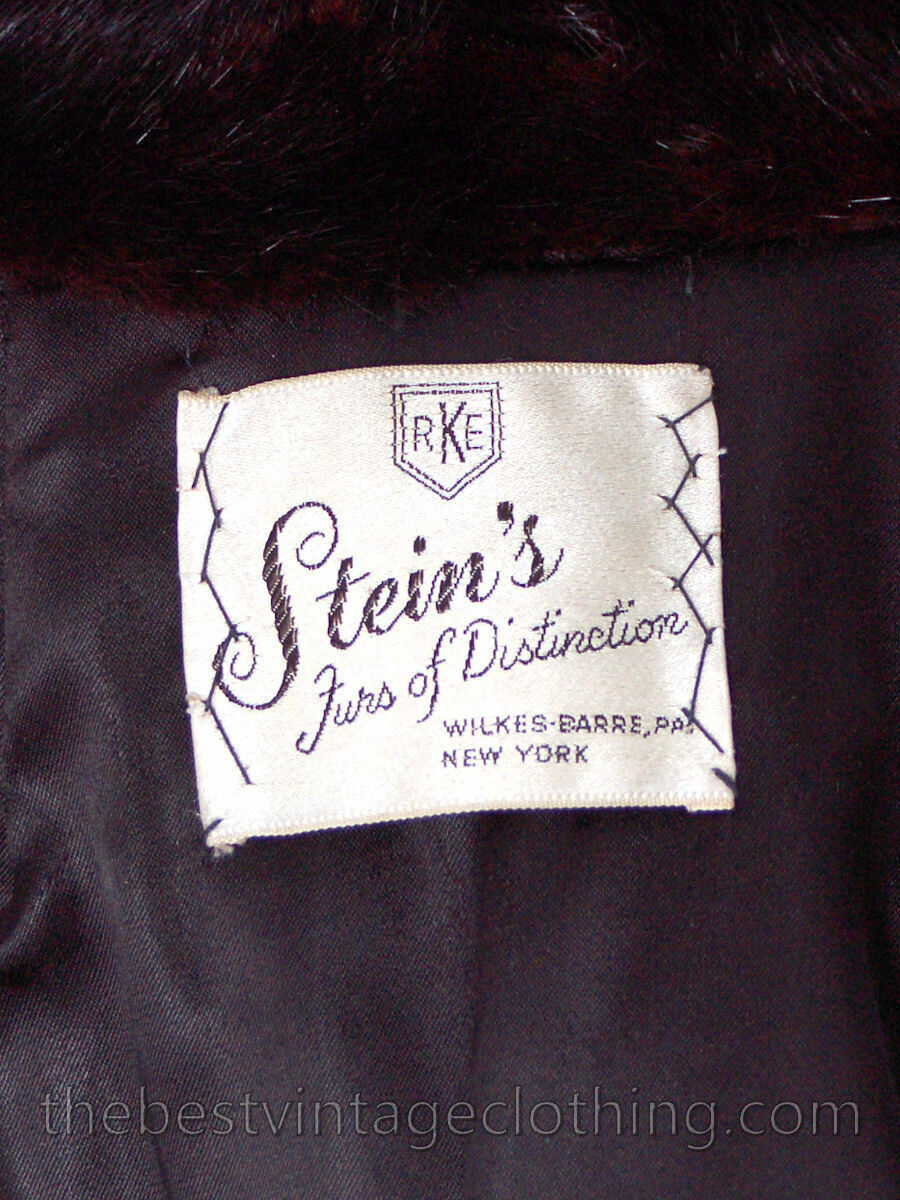Stein?s Furriers in Wilkes-Barre, Pennsylvania, was an established luxury retailer in the 20th century, serving as a destination for fine fur garments. This coat?s convertible design showcases the innovative, multifunctional styling that high-end furriers introduced during the 1970s ?mob wife? and disco glamour era.