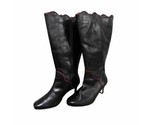 MOB WIFE Vintage Ros Hommerson 80s Black Leather Ladies Boots Scallop Top Red Trim, inside zip Sz 8.5 WW, H29714( wide calf) Soles are man-made. Worn very little as shown. The only flaw is what looks like a glue stain on the lining of one boot.