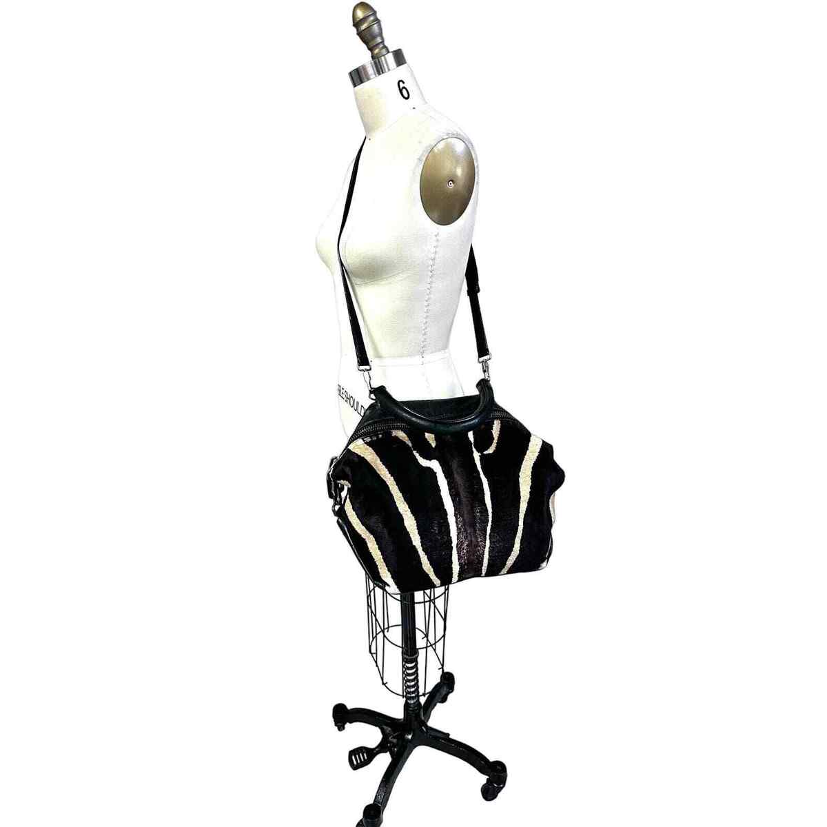 Mob Wife RARE Vintage Boyy bag Leather Purse with Extra Large Metal Zipper Flat Bottom with pony or cowhide dyed in a zebra pattern on one side and smooth black Leather on the Other. Roomy Compartment with Zipper on the side. Thick Padded Single Handle and detachable adjustable leather Shoulder Strap. Convenient for cross-body. Excellent Condition. The former owner was a buyer for Bloomingdales in the ''70s-2000s. She traveled extensively worldwide and was a purse designer herself. She got a lot of samples and one-of-a-kind items and all of them will be sold through my store, so stay tuned!