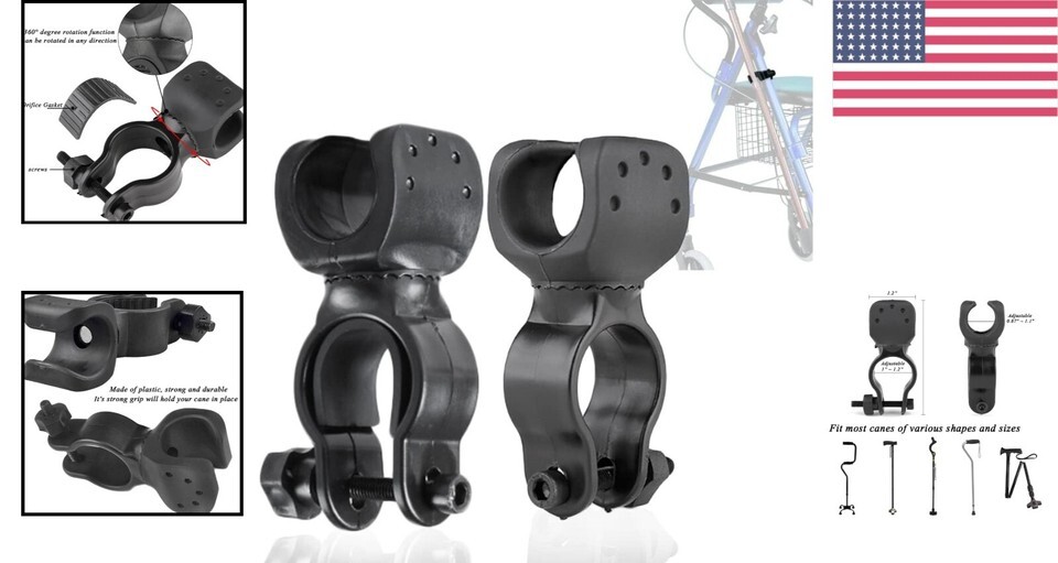 - Mobility Aid Stick Bracket - 360° Rotatable Holder for Canes, Crutches, Walkers