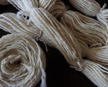 I begin by pulling the roving from the bag - that's a fancy term for spinnable wool- and set up at my Ashford Traveler wheel. After a few hours, there's quite a bit of single spin up nicely. But the work doesn't stop there - I then have to wind it off onto another bobbin and get ready for the next step.