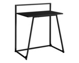 This compact 30'L contemporary computer desk, finished on all sides in a smooth black laminate with a sturdy black metal base, creates a functional workspace for study, writing or working on your laptop.