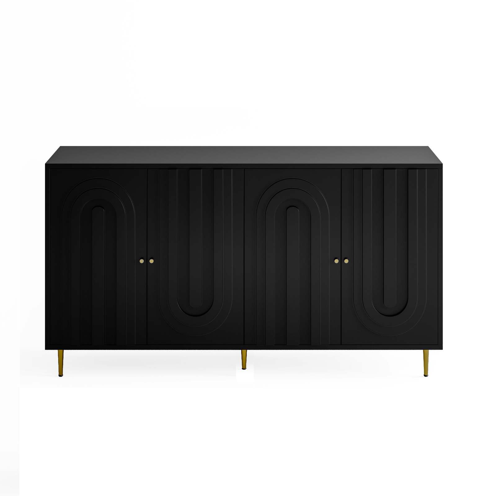 Modern Black 4 Door Wooden Cabinet Sideboard Buffet Server Cabinet Storage Cabinet