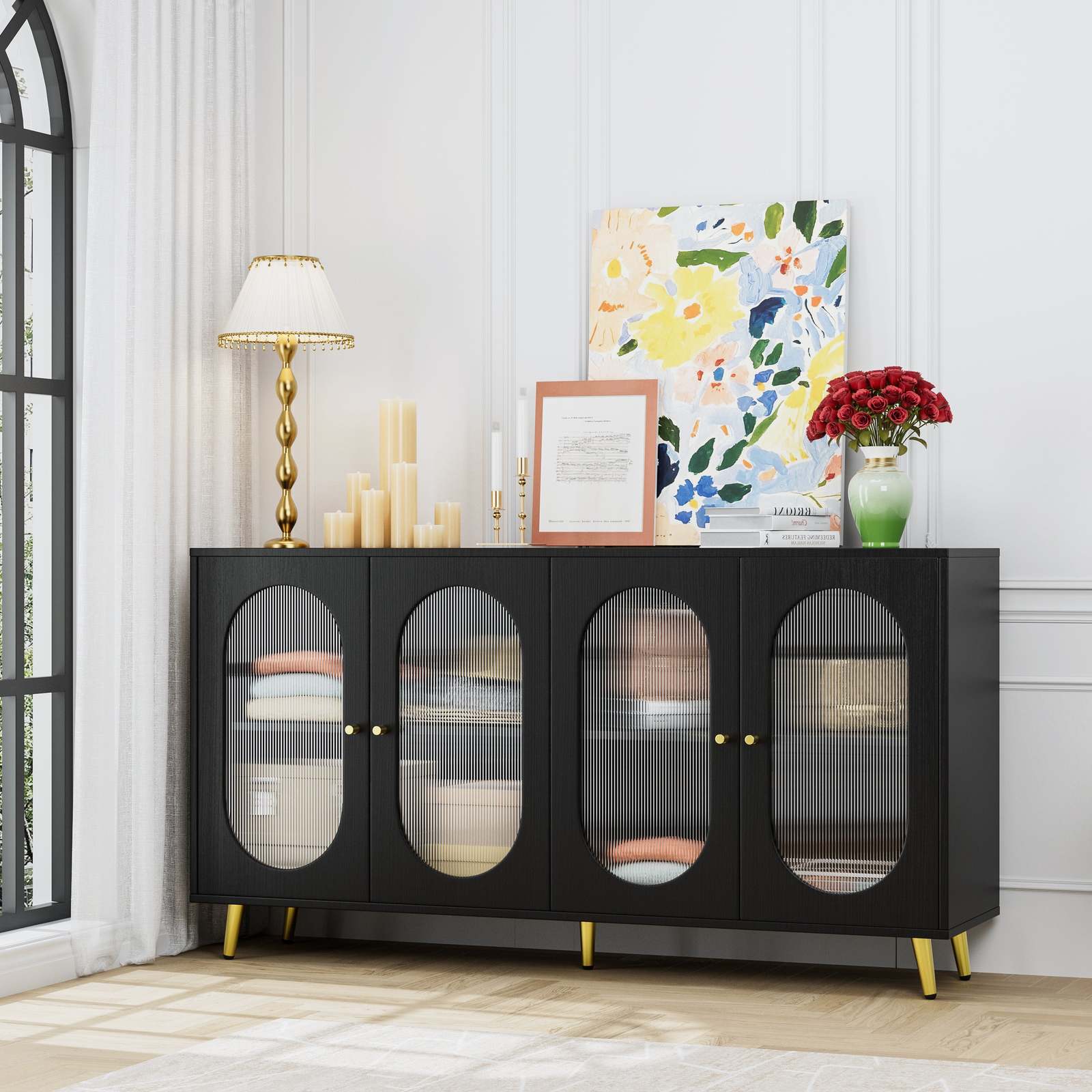 - Modern Black Sideboard Cabinet with Acrylic Doors, Storage Console Table