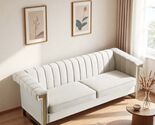 Modern Cream Velvet Sofa with Gold Accents - Sleek Channel-Tufted Upholstery, 3-Seat Couch for Living Room and Office Decor