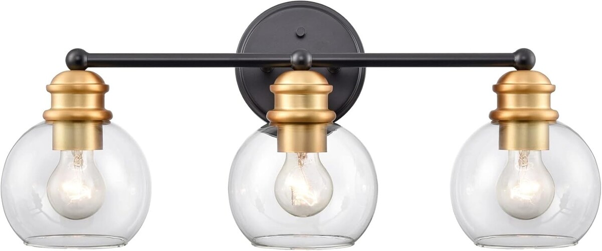 - Modern Farmhouse 3-Light Bathroom Light Black Gold Vanity Light Fixture Globe