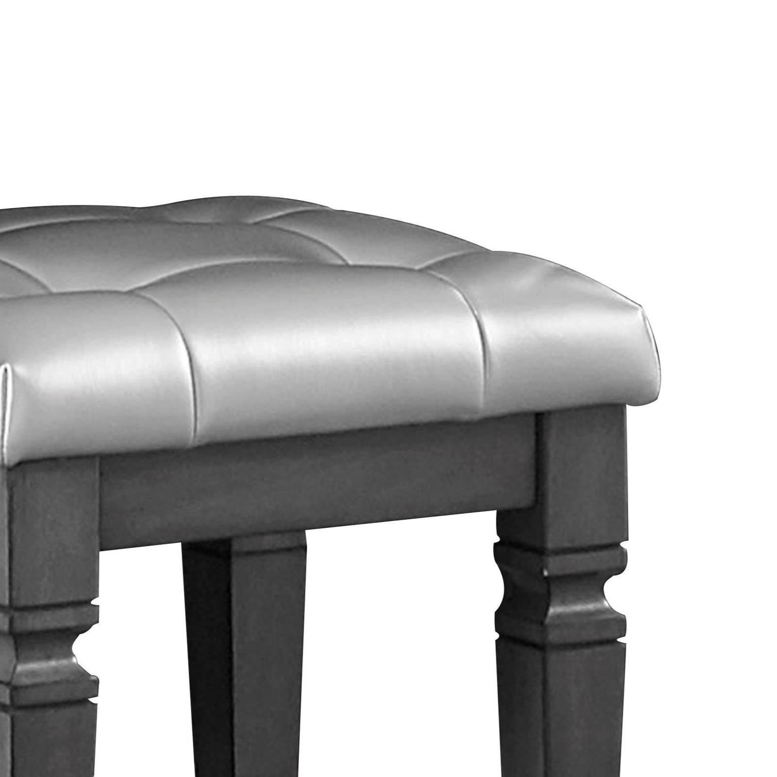 - Modern Glam Gray Faux Leather Tufted Vanity Stool - Luxury Foam Cushion