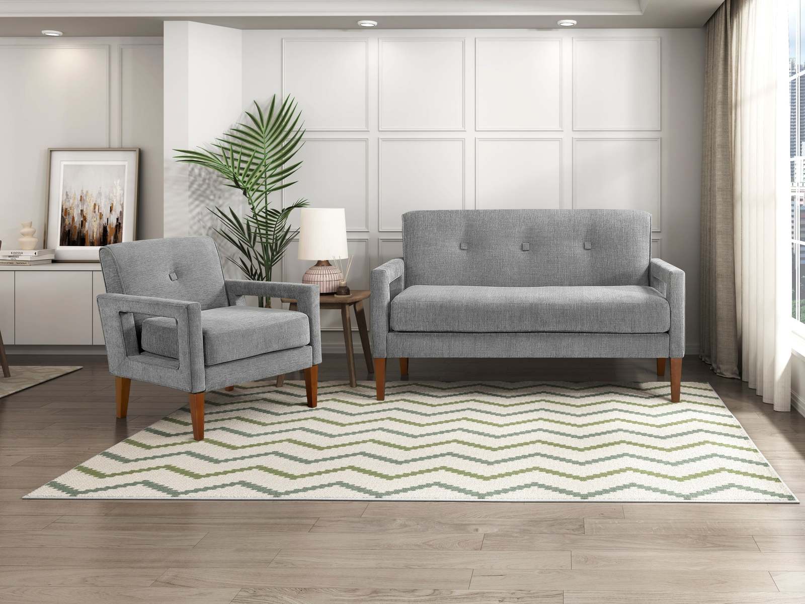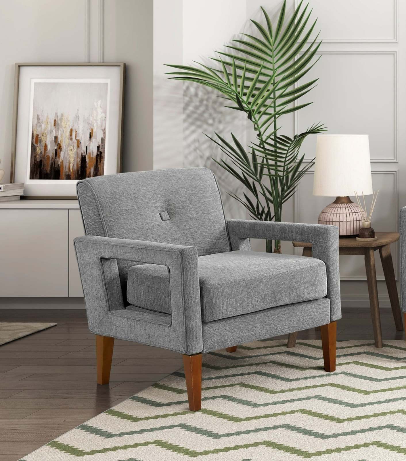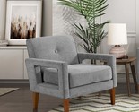 - Modern Gray Chenille Armchair - Pocket Coil Living Room Chair Solid Wood Legs