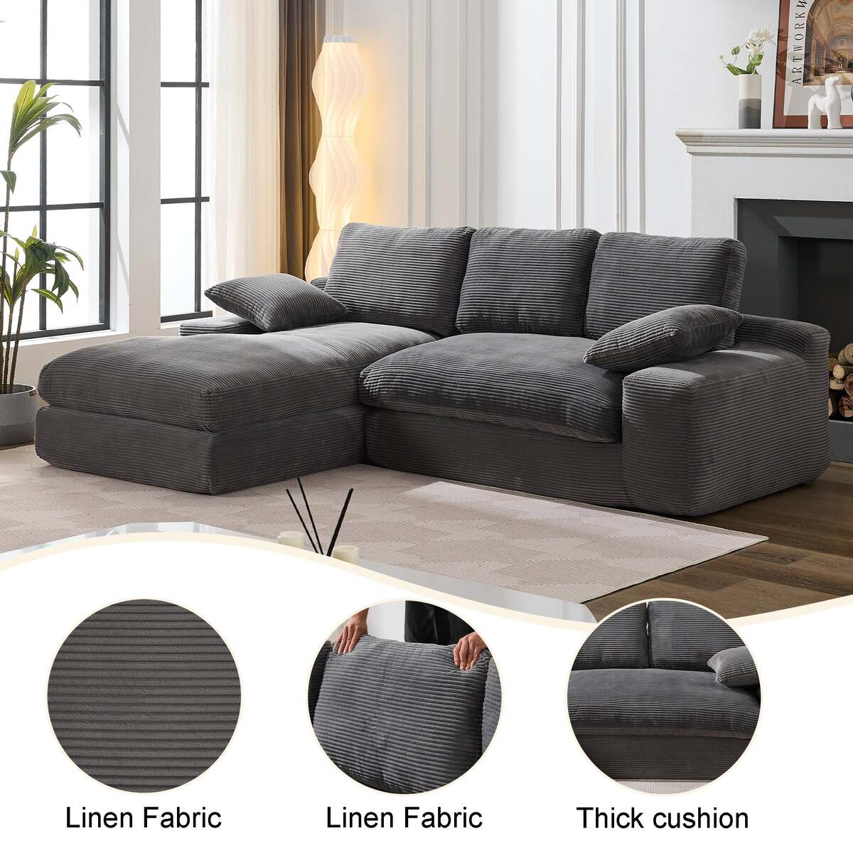 Comfortable sectional sofa: The 9.5inch thick cushions are made of high resilience foam, they are comfortable and supportive.