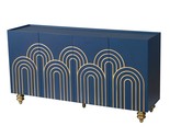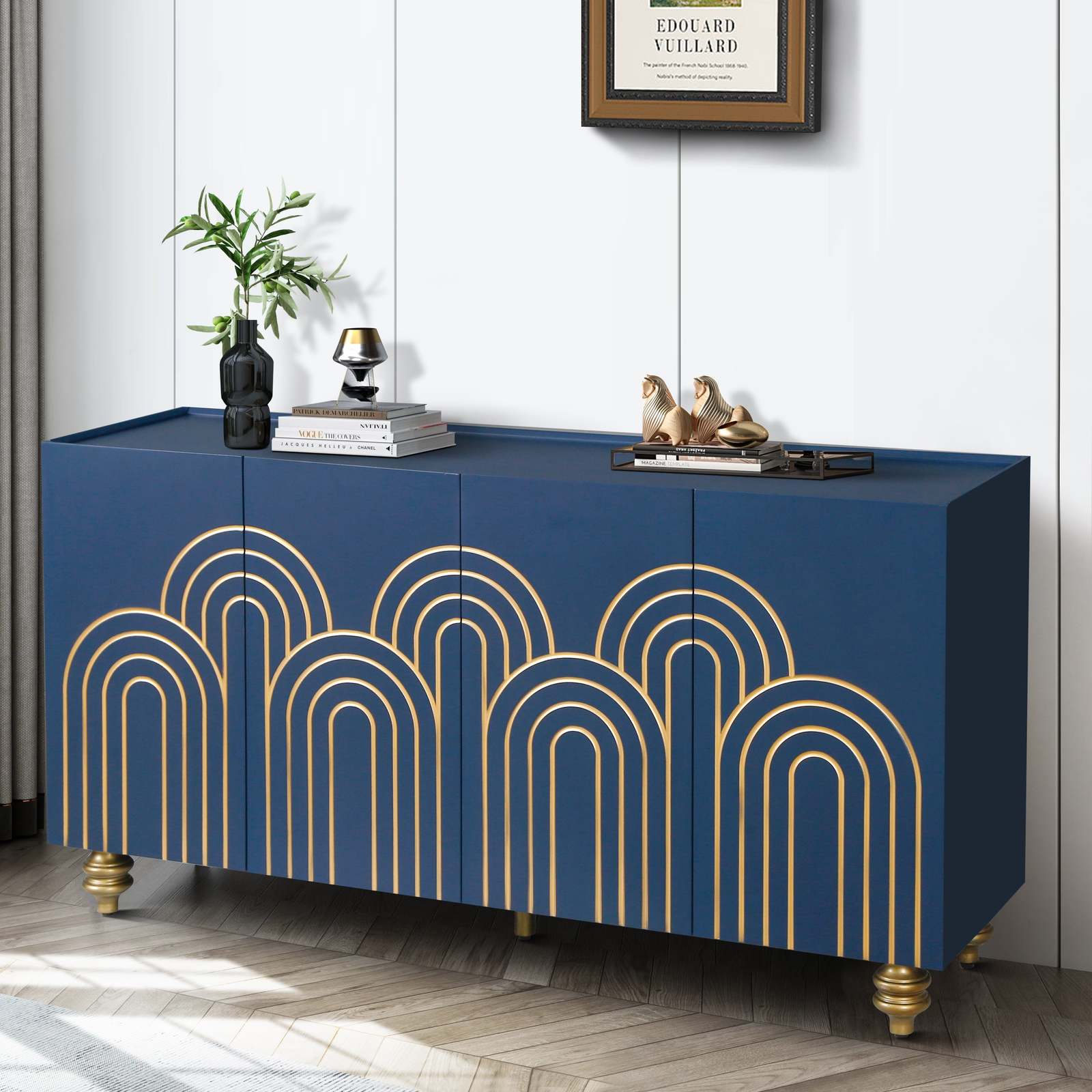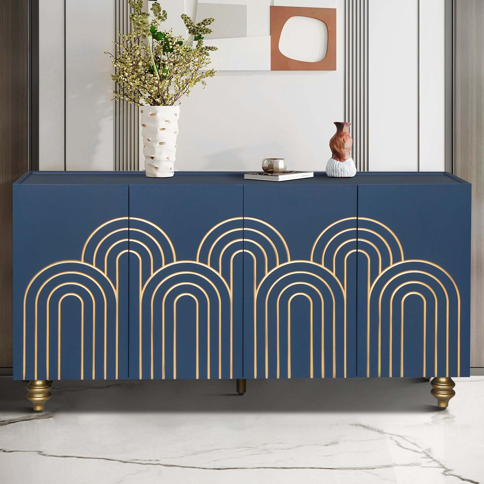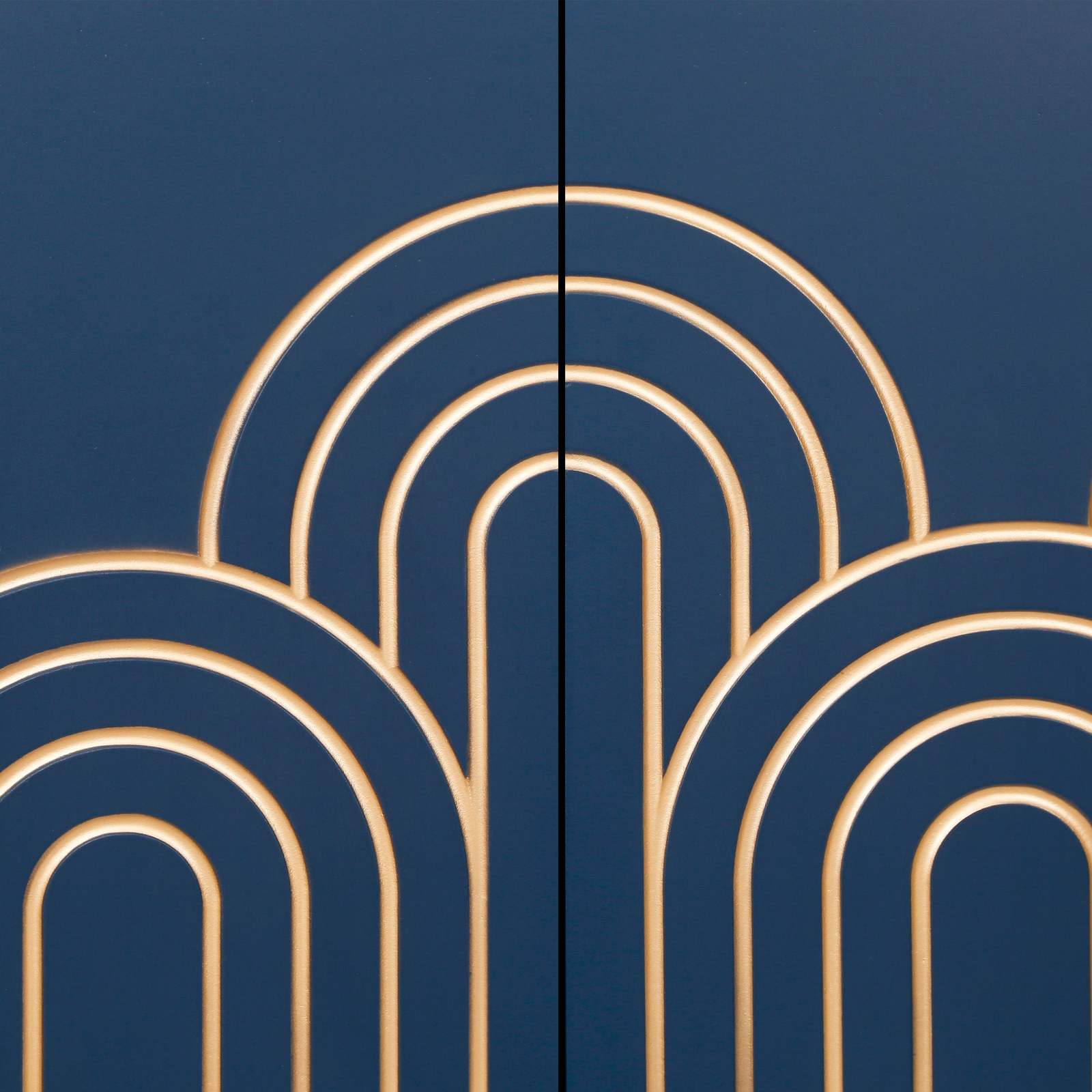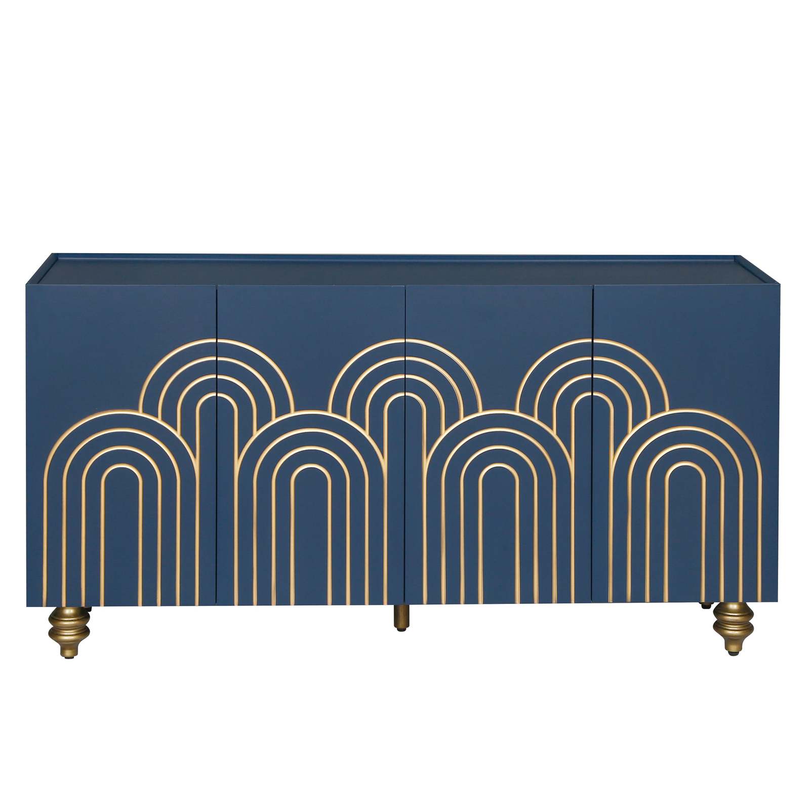 - Modern Navy Blue Fluted Sideboard Buffet Adjustable Shelves Curved Lines