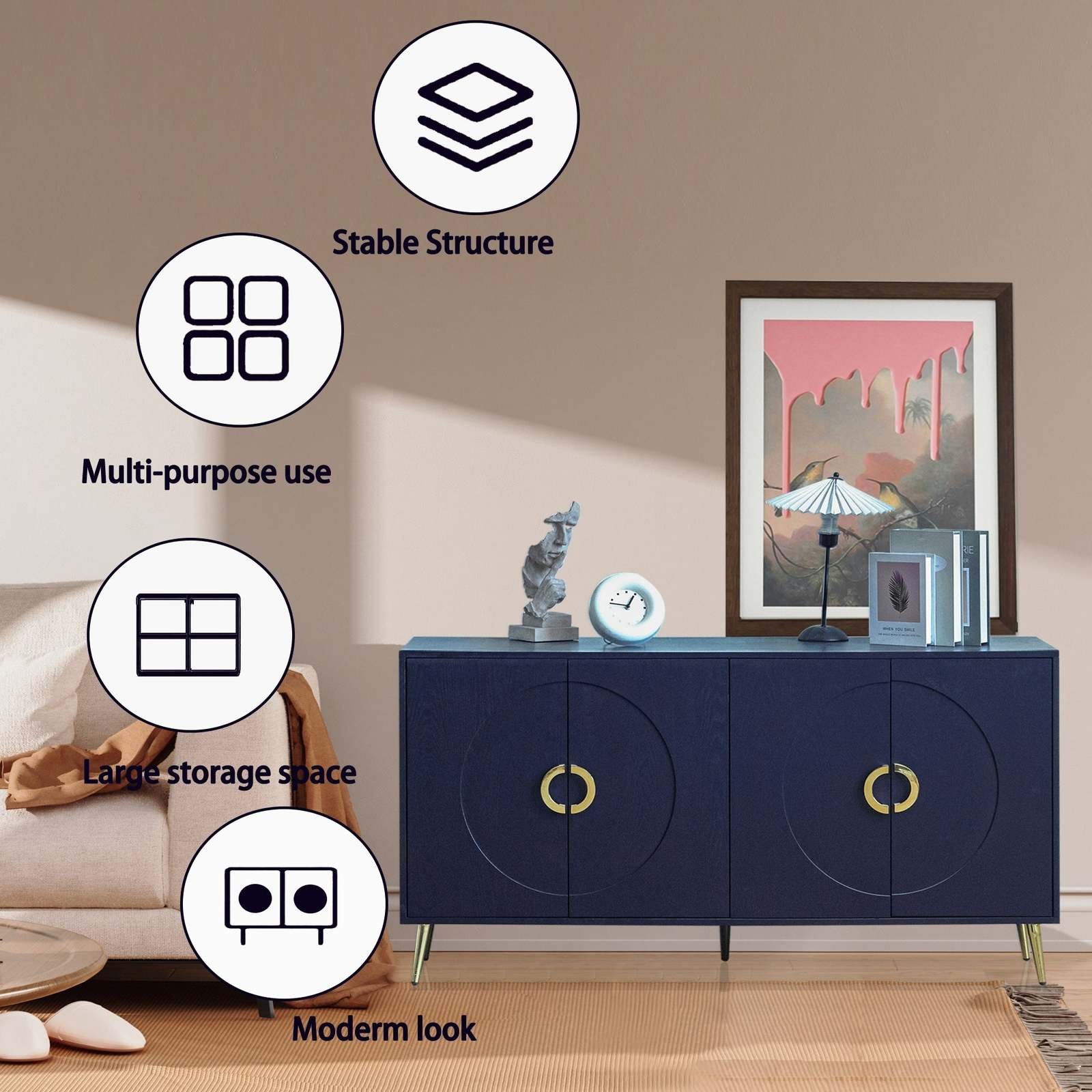 Modern Navy Blue 4 Door Wooden Cabinet Sideboard Buffet Server Cabinet Storage Cabinet