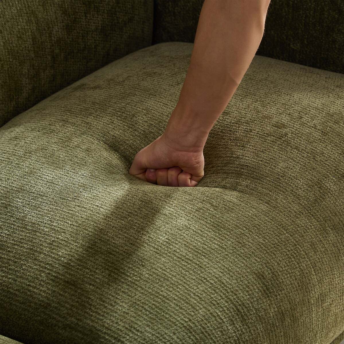 The modern couch is covered in high-resilience Boucle Fabric. This fabric is breathable, soft to the touch, and significantly boosts the sofa?s comfort level. Meanwhile, its solid wood frame delivers reliable sturdiness, easily supporting most adults for long periods without wobbling or losing shape.